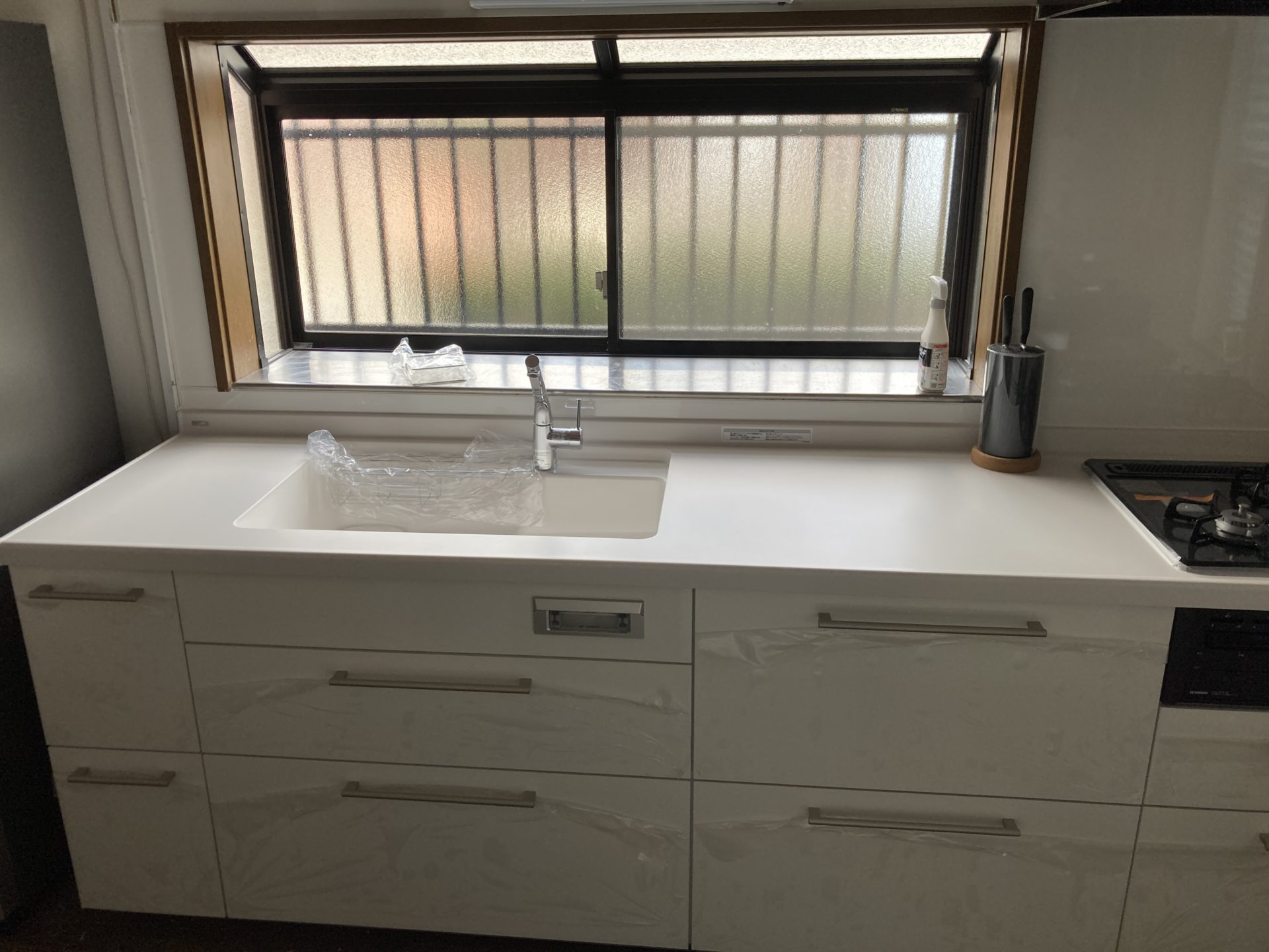 天板をステンレスから人工大理石へ変更し、明るく高級感ある空間へと仕上がりました。